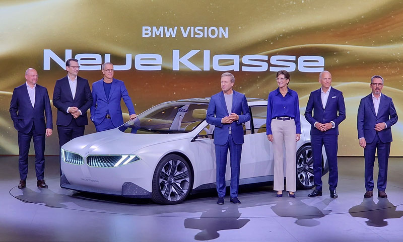 Den samlede BMW bestyrelse med formanden Oliver Zipse i spidsen. Det var Zipse selv, der forestod præsentation af BMW Neue Klasse, oh han lagde ud med først at lade BMW i Vision Dee kører over scenen som en prolog til hvad der var i vente.