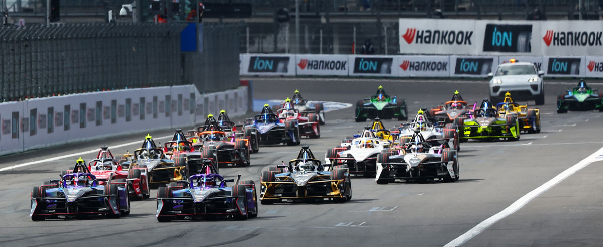 Verdensmesteren Pascal Wehrlein i fabriks-Porsche ligger hér på 2. pladsen lige foran Jake Dennis i Andretti-Porsche, Jean-Éric Vergne i DS-Penske, alt imens Oliver Rowland lurer på de forankørende i sin Nissan.